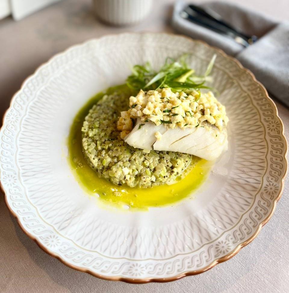 Филе судака с ризотто из кабачка