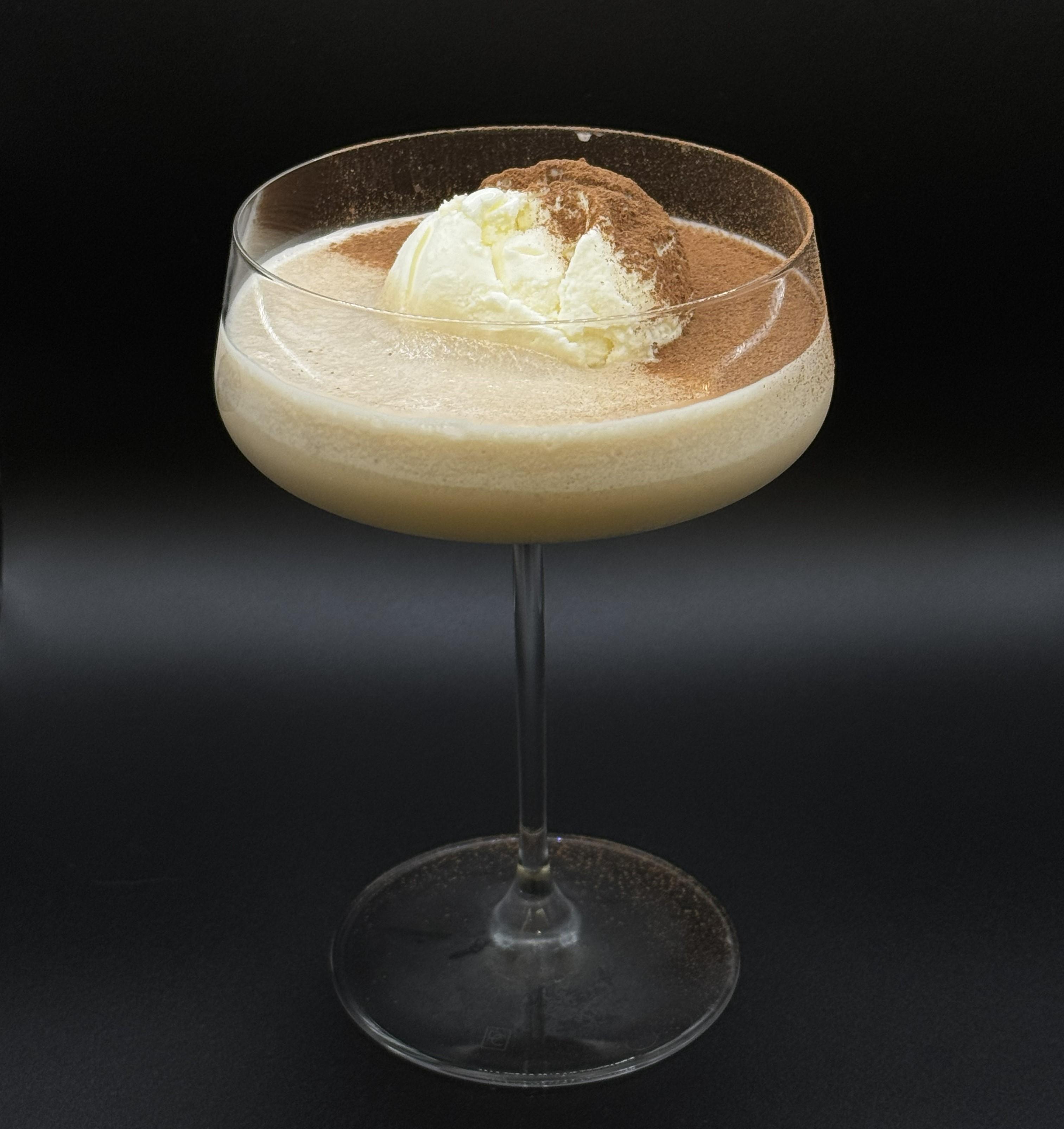Водка, кофейный ликер, ванильное мороженое, шоколадный топинг